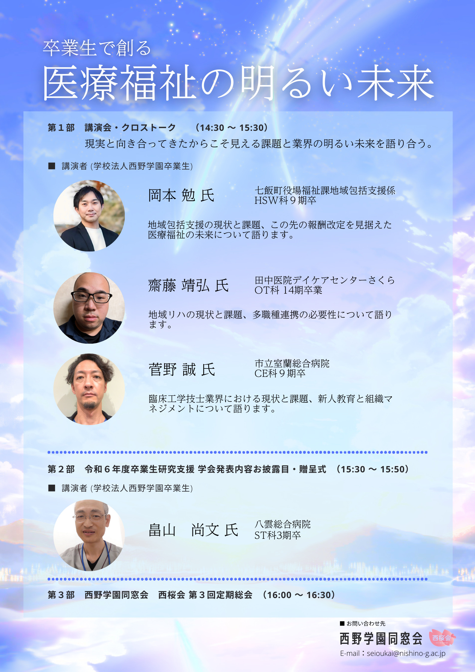 - 2025年12月6日 西桜会 講演会・定期総会 開催予定(札幌医学技術福祉歯科専門学校 講堂)
