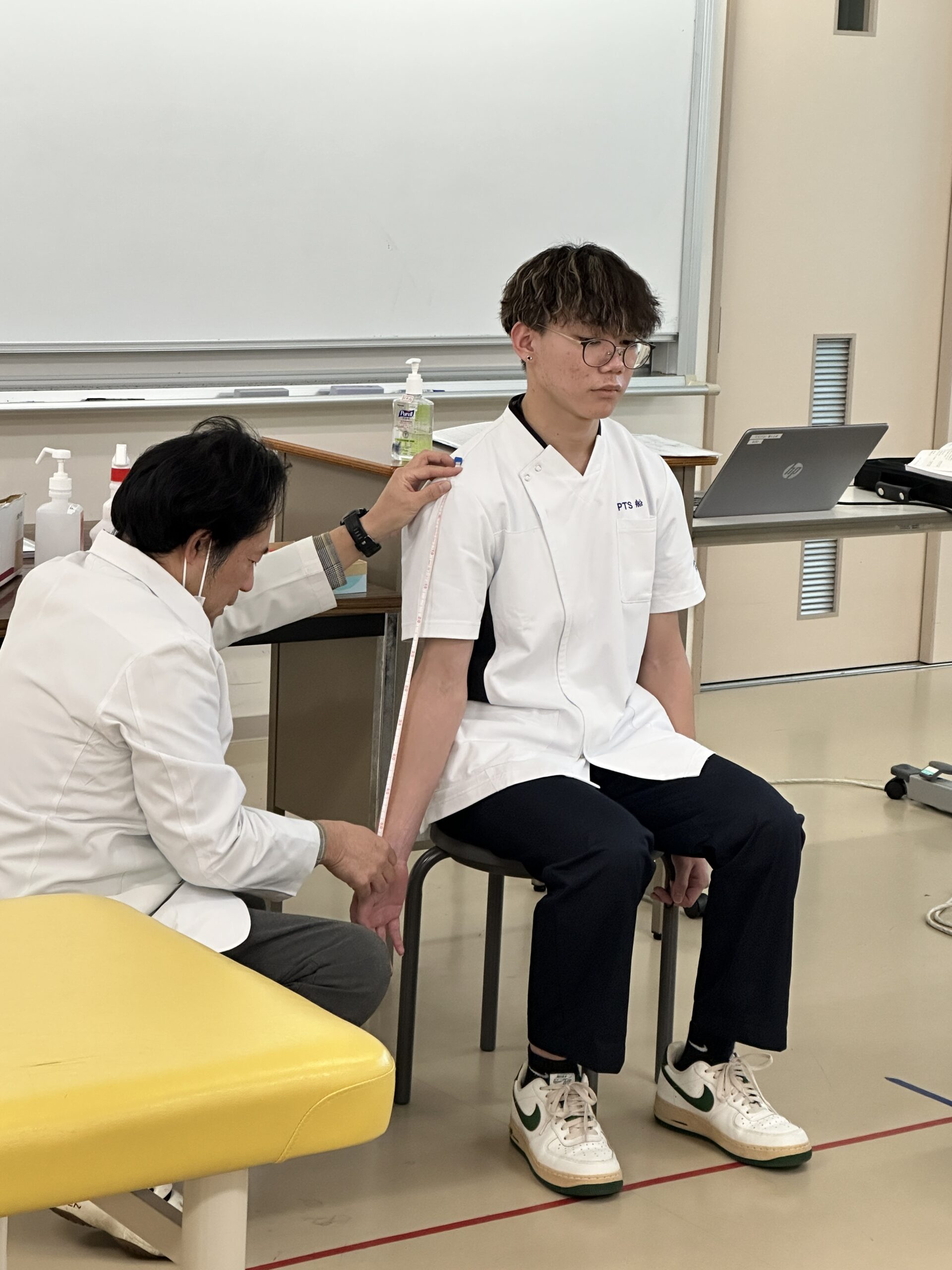 本日はその中から、「理学療法評価演習Ⅰ」の授業の様子を少しだけご紹介します!本日のテーマは「上肢長」「上腕長」「前腕長」、そして「前腕周径」の測定方法の学習でした。