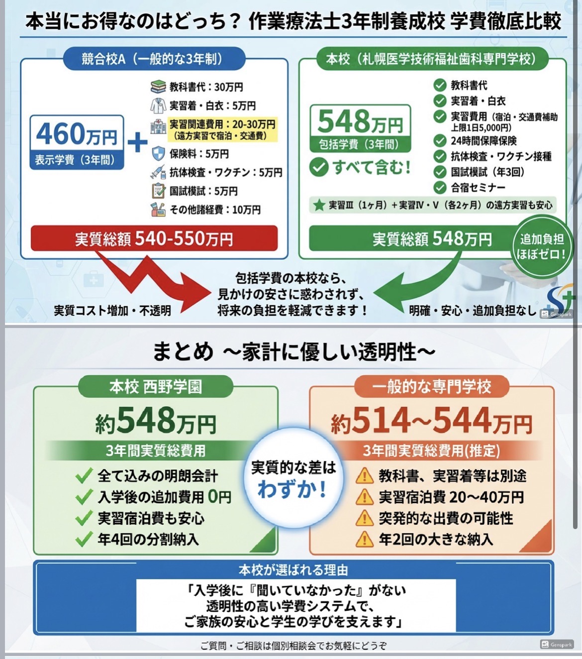当校はそんな入学後のお金の積み重ね、憂いがないように様々な費用を込々で学費としています!!