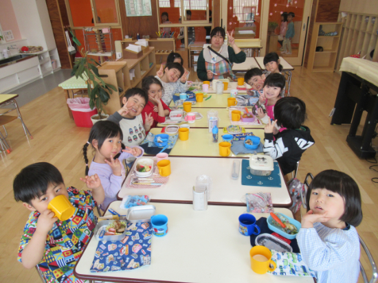 年少組では、新しいクラスの先生や友達とゆったり時間を過ごしました。