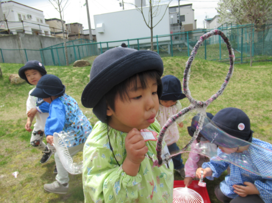 戸外で開放的な活動を!ということでシャボン玉をして遊びました。