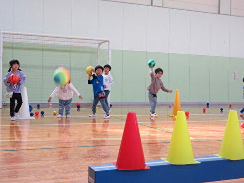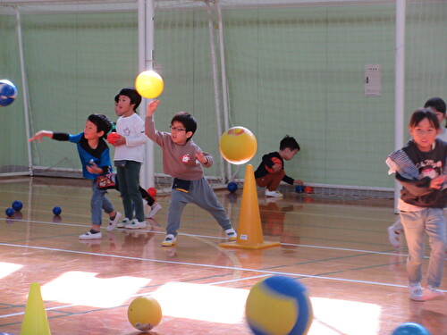 たくさんのボールがあり夢中で投げてくれた子ども達です。