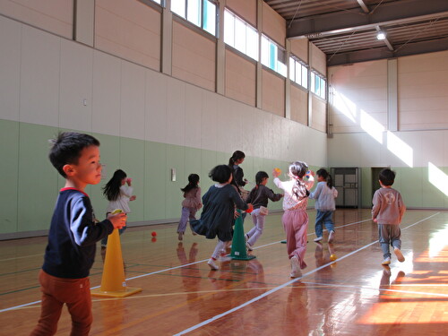 園の隣にある西野記念体育館で行い、最初から最後まで全力で取り組んでいましたよ。