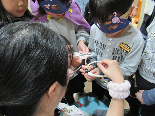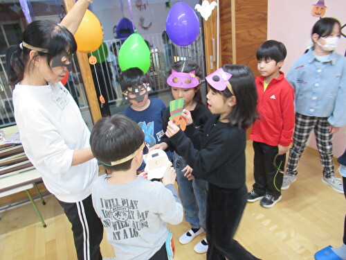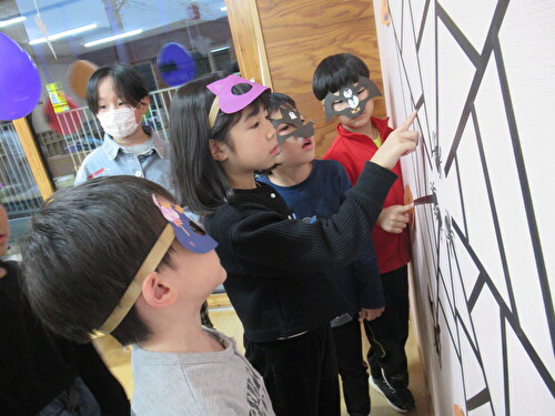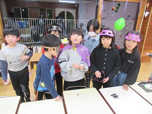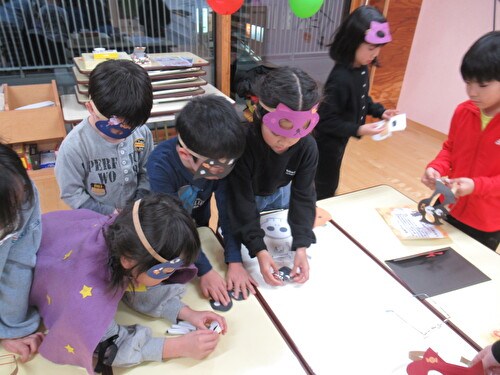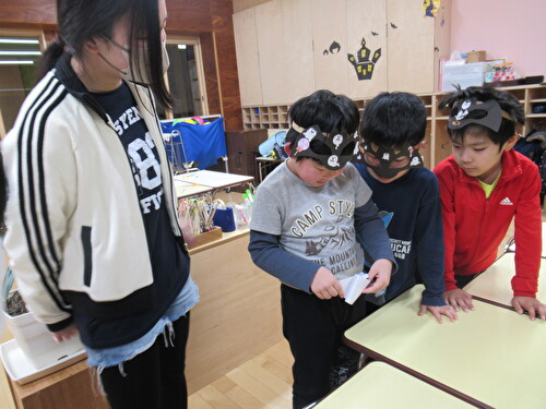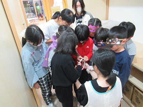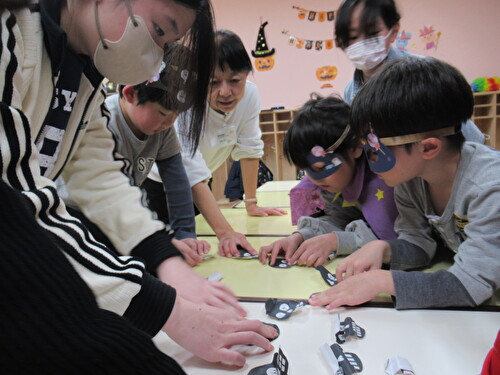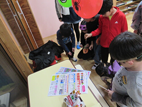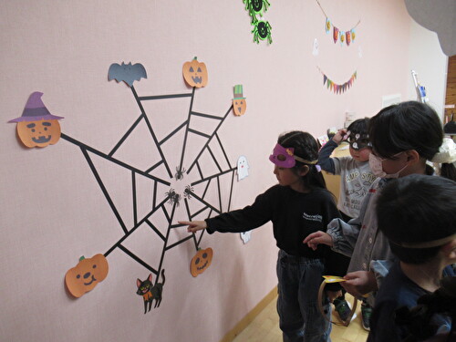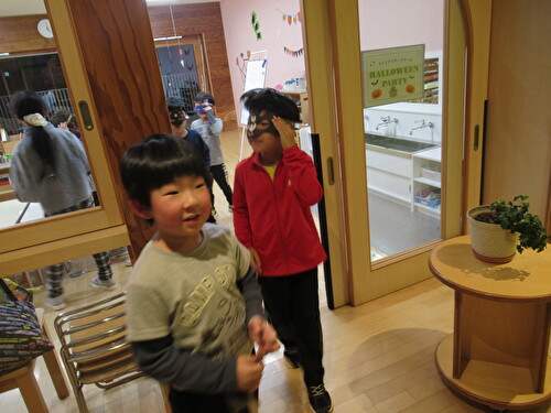 お菓子を食べたあとも、白い顔のオバケがいろいろな場所から現れて大興奮の子どもたちでした。