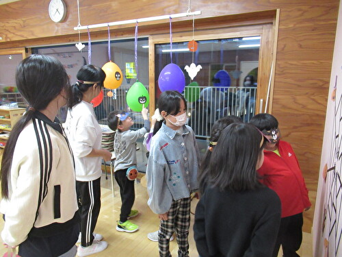 その文字をつなげると「ガイコツ」だったので、ガイコツの風船を割ります🎈