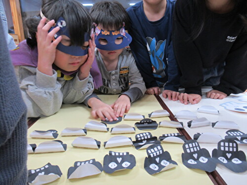 助け出す前に、オバケから人間だと悟られないように、マスクを作りました🥸これでバレないはず✨