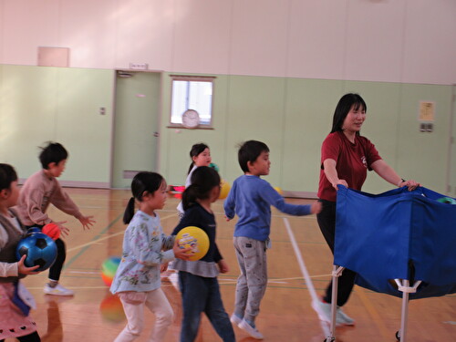 園の隣にある西野記念体育館で行い、最初から最後まで全力で取り組んでいましたよ。