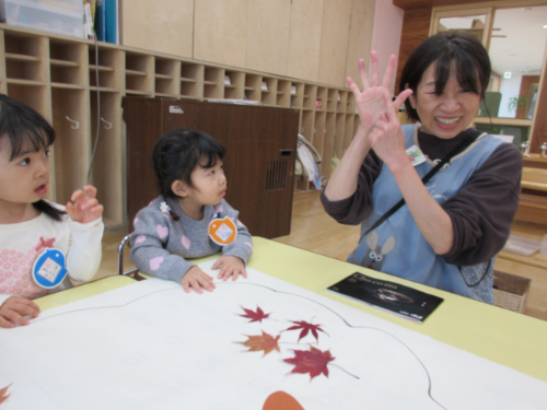 まずは本物の紅葉は手のひらに似ているね・・・・実物と比べてみました。