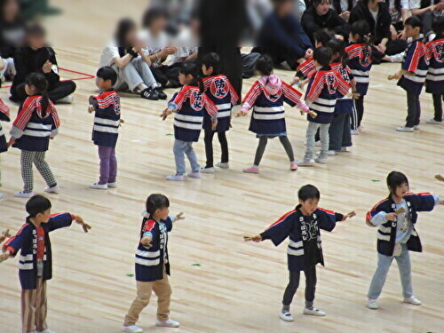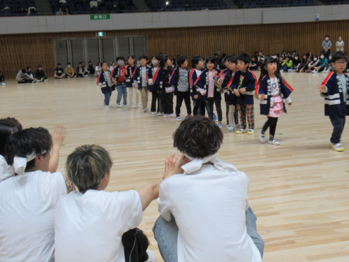 中央で踊る子どもたちの為に、途中からちょっと短く調整してくれました。