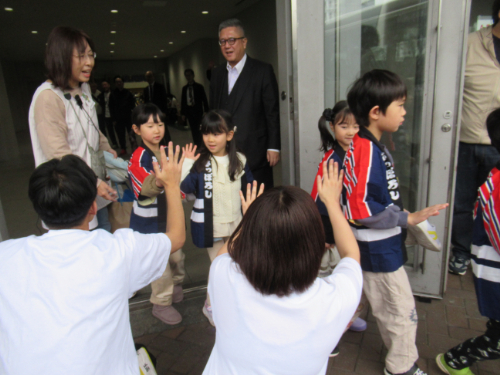 学生の皆さんや先生方に見送られ、きたえーるを後にしました。