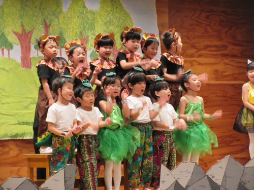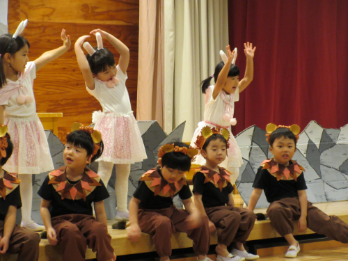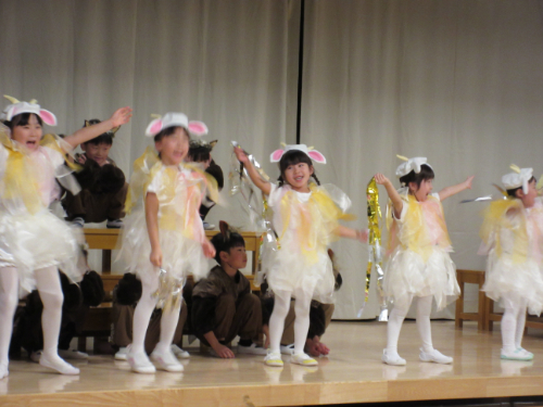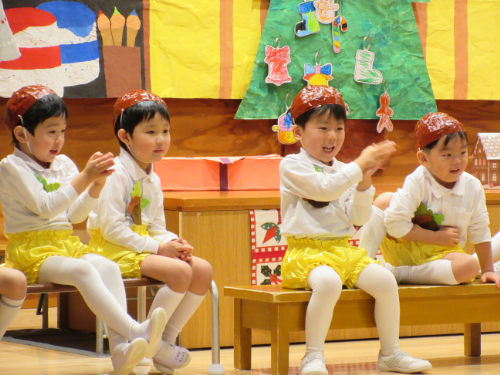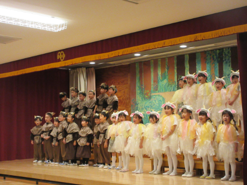 さくらんぼ1グループ、くり3グループ、すみれ組の発表会。