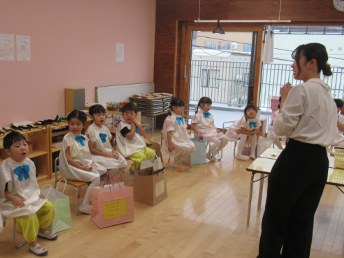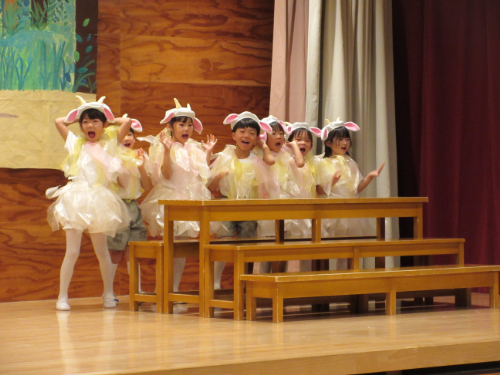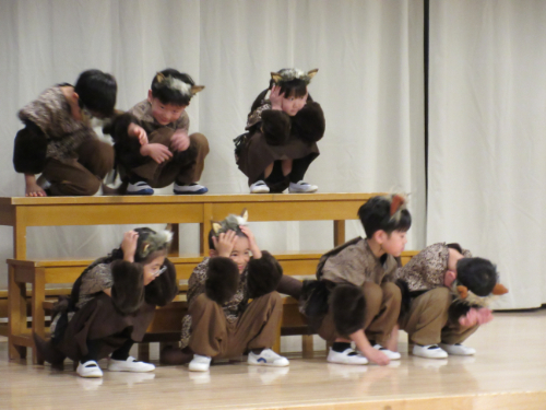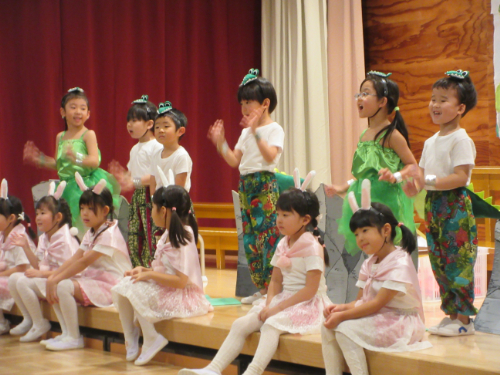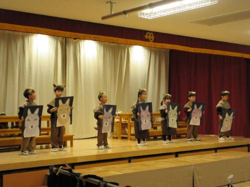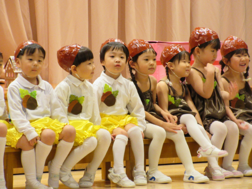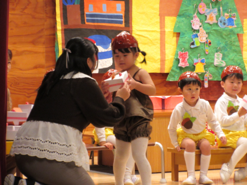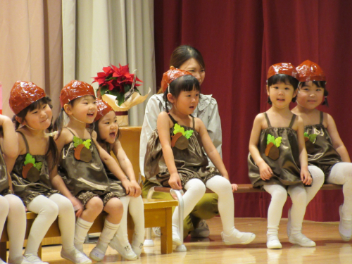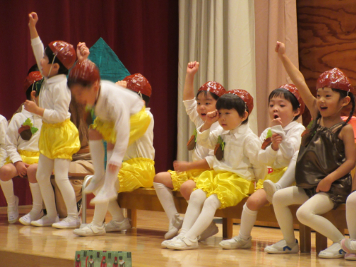 さくらんぼ1グループ、くり3グループ、すみれ組の発表会。