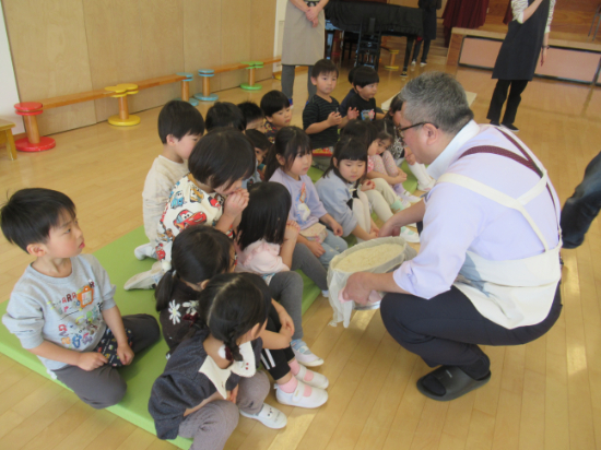 「ごはんのにおい!」「つぶつぶがある」色々な発見がありました。