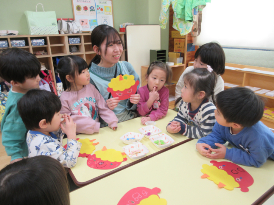 年齢ごとに挑戦できることが異なり、幼児期の子どもの育ちがよく見えた節分となりました!