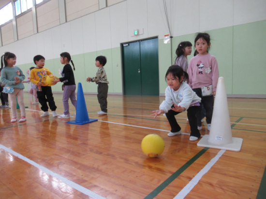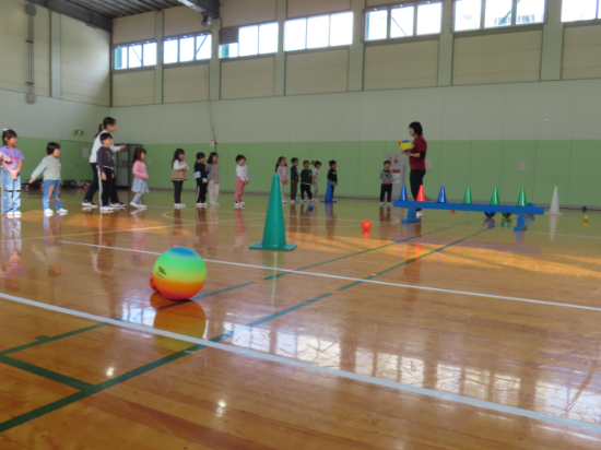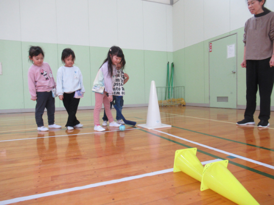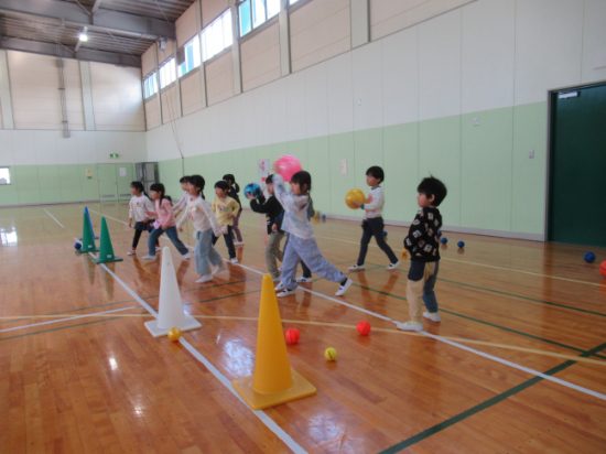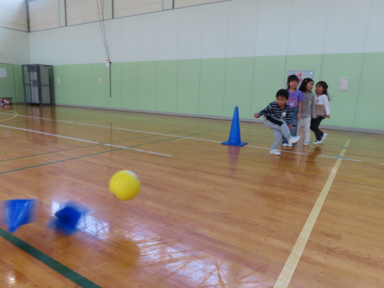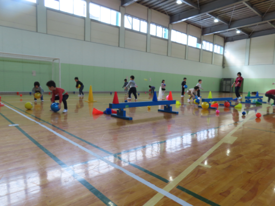 「バルシューレ(ドイツで生まれた子どものためのボール教室)」をくりグループに体験してもらいました。