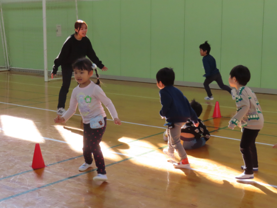 ねずみ役の子どもたちはネコ(先生)に捕まらないように逃げます!