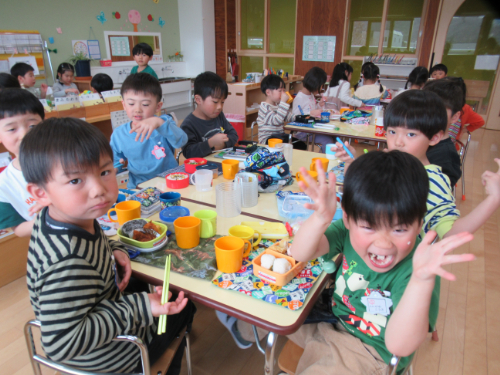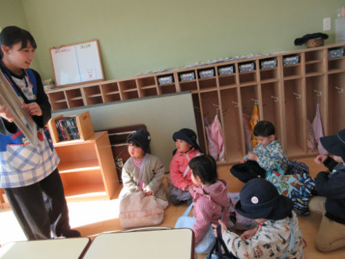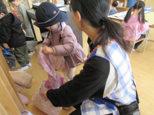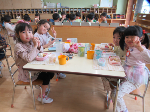 春らしい気候の中、元気いっぱいにみんなが登園してきました。