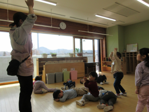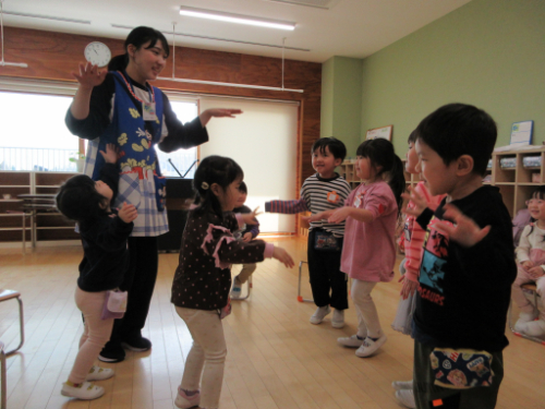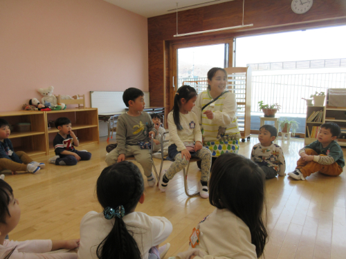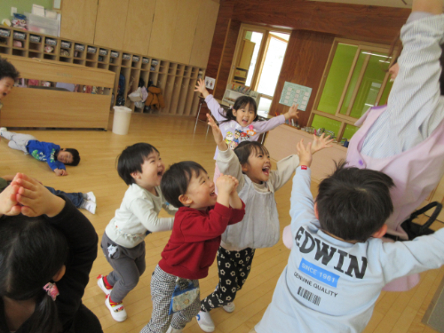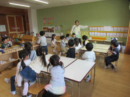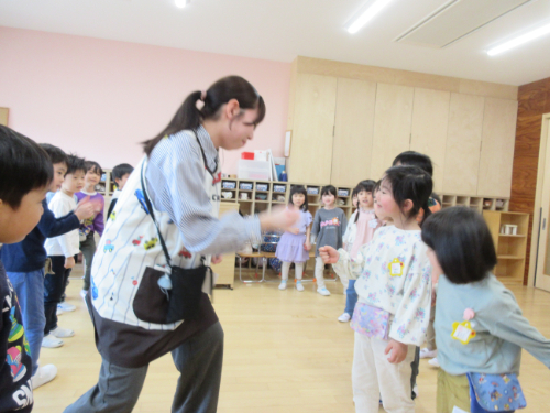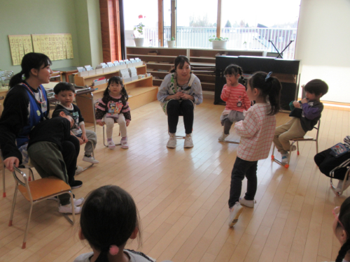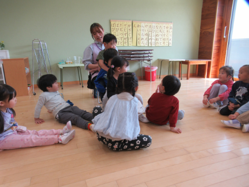 自己紹介も兼ねて、クラスではわらべ歌遊び等を楽しみました。