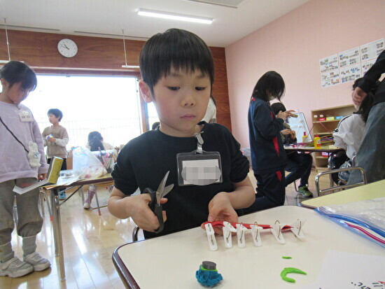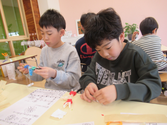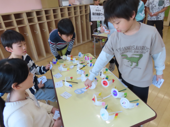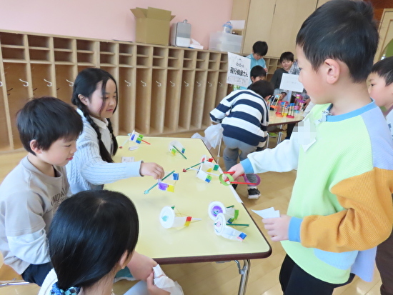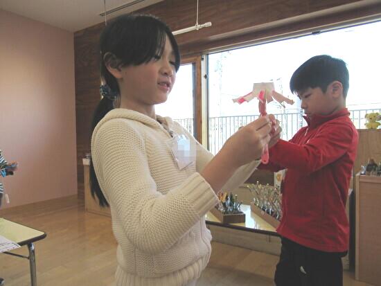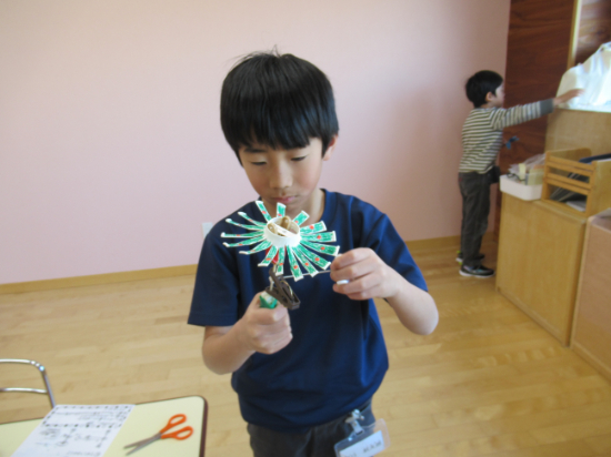 既製品ではない手作りのおもちゃなのでタコ紐がちぎれてしまったり、竹串が折れてしまうハプニングもありましたが、自分で作ったおもちゃは愛着があるようです🥰