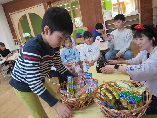 子ども達には「商品購入券」を一人2枚ずつ渡し、2つの商品を買うことができます💰