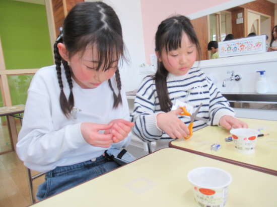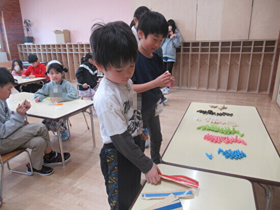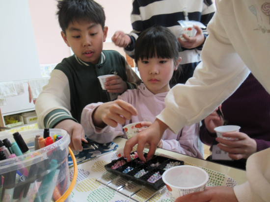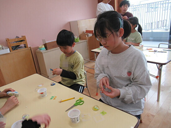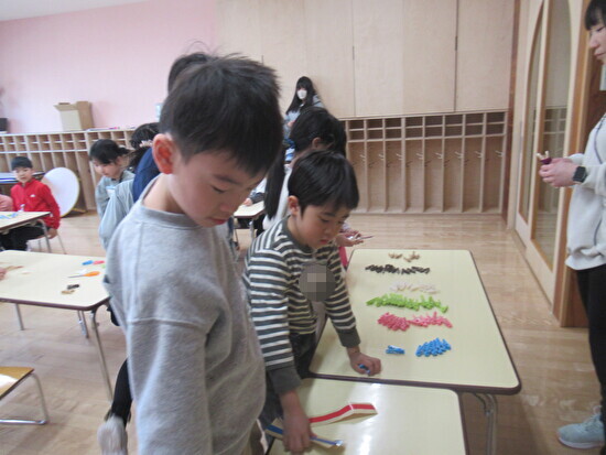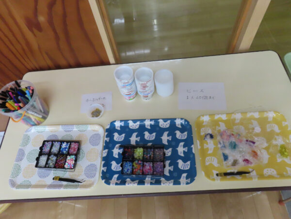 どの工程からスタートしても良かったのですが、子ども達は中に入れるビーズが気になったようです😁