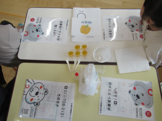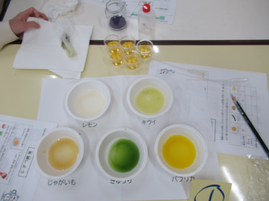 札幌市消費者センターの役割と体に必要なビタミンCの大切さをお教えしていただき、ビタミンCが多く入っている食材を実験を通して知るという内容でした👀