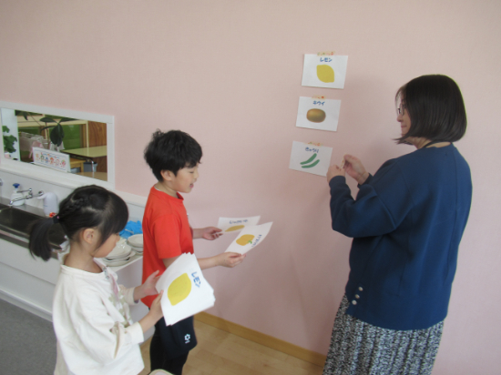 まずは、先生から商品の紹介をして自分が何屋さんを担当したいかを考えます🤔