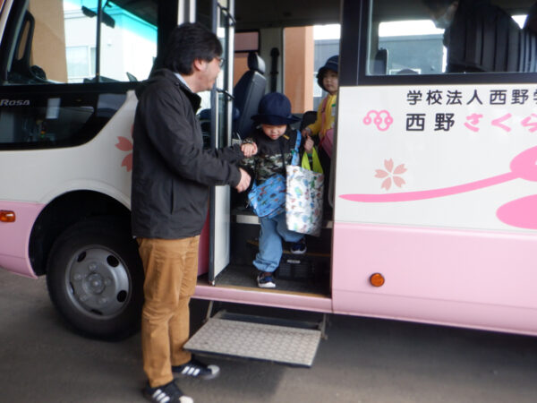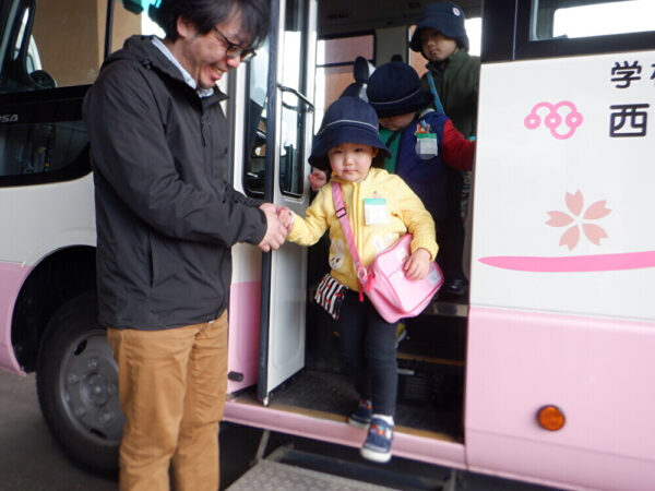 バスで幼稚園に到着!