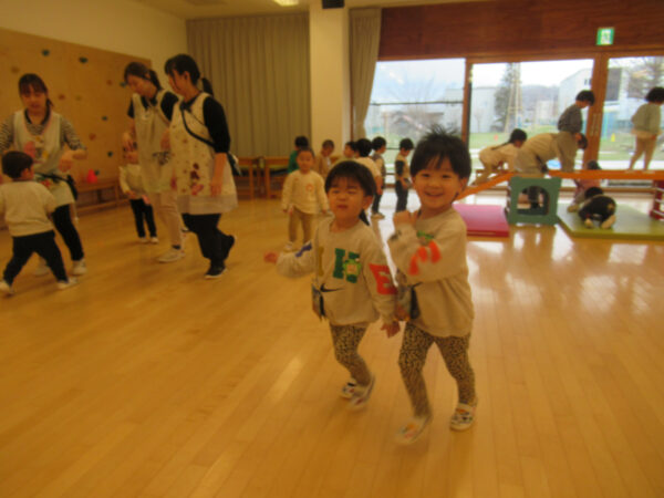 先生からの話を聞いてから、ホール遊びスタート!