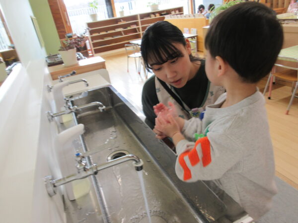 靴を取りかえたら、うがい・手洗いの朝の支度をします!