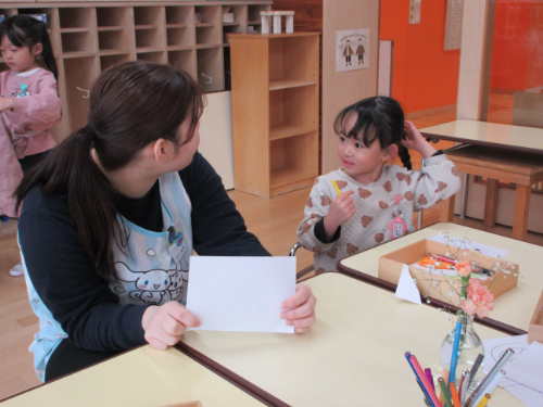 今は園での生活の流れを知る事、安心して生活する事、楽しむ事を大切に