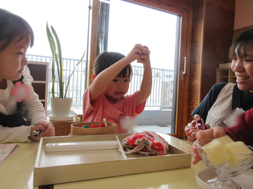 朝の支度そっちのけで遊びに飛びつこうとする子もいるほど、楽しみを見つけ始めている子どもたち。
