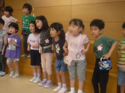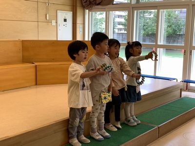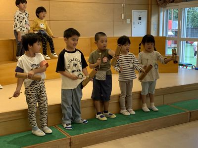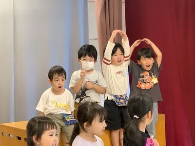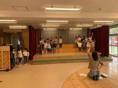 子ども達の大好きな絵本、そして活動を題材として用いりました。大好きなお話な為、お話の世界観に入り込むのがとても上手な子ども達です!