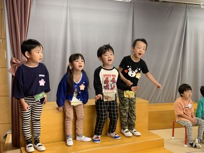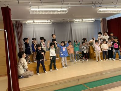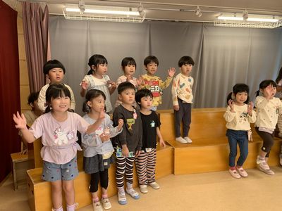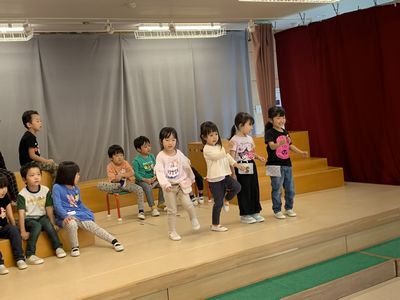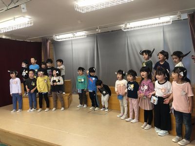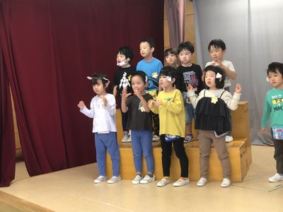 どんぐり2グループもどんぐり3グループも去年の経験があるからこそ“楽しい気持ち”のほかに沢山のお客さんに見られる“恥ずかしさ”そして“不安感”ももっています。初めの頃はまだまだ覚えられないセリフや歌に自信がなく、声が小さくなってしまう様子もありましたが大好きな友達、先生と一緒に活動していくなかで少しずつ自身が付き、どんどん声が大きくなっていく姿に嬉しく思う担任達です。これからも“演じるって楽しい!”という気持ちを大切に、発表会活動だけになりすぎないよう沢山の遊びでリフレッシュしていきながら取り組んでいきますね!