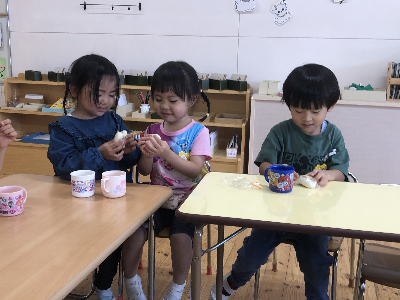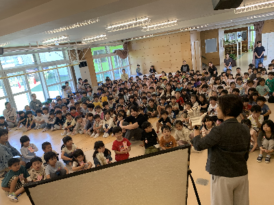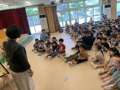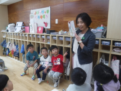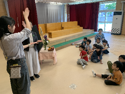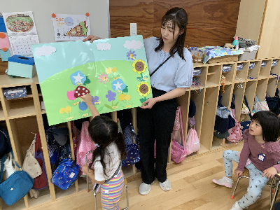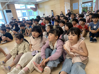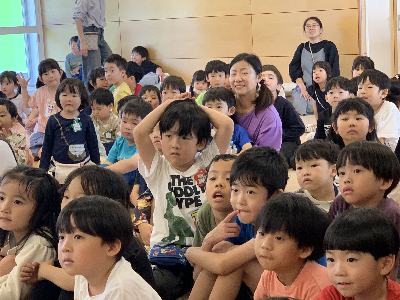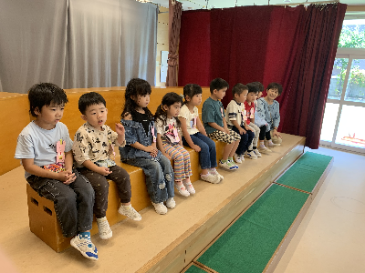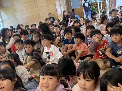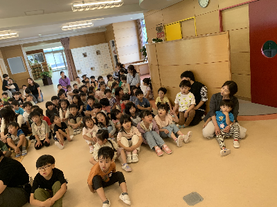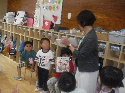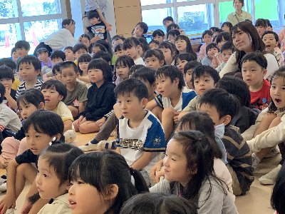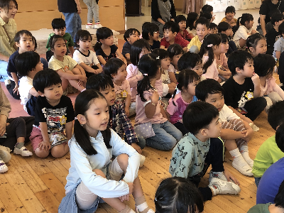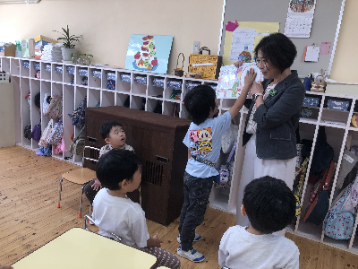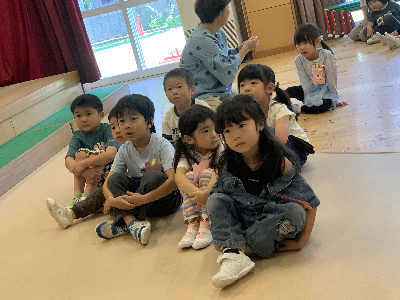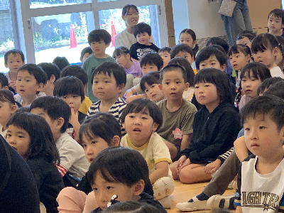手袋シアターを見せてもらい、みんな真剣な目でジーッと見てましたよ。