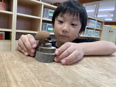 たくさんつなげて何を作ってるの?と聞いてみると、「身長測るやつー!」だそうです♪