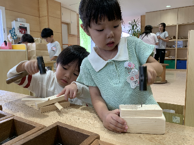 うさぎさん・どんぐりさんも金槌の使い方がとても上手になってきました!