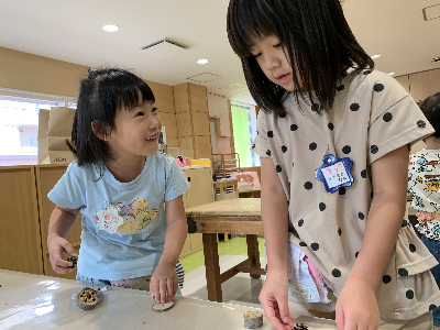 友達と一緒に楽しそうに作品を作っていましたよ!