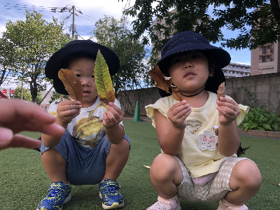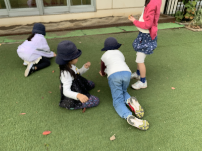 これからはもっと秋も深まり、園庭に落ちる葉っぱで遊ぶ姿が沢山になると思います!