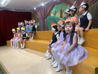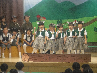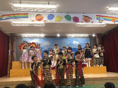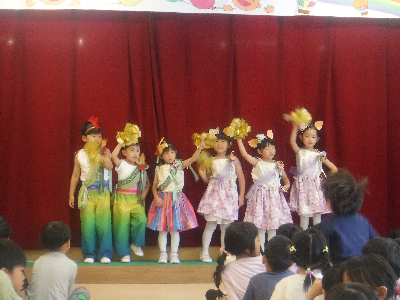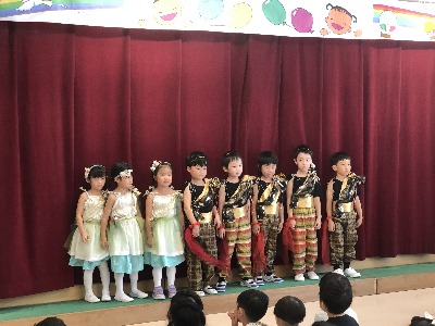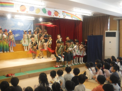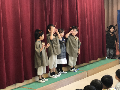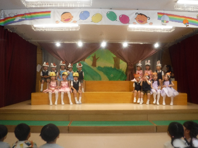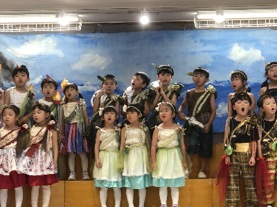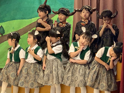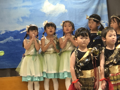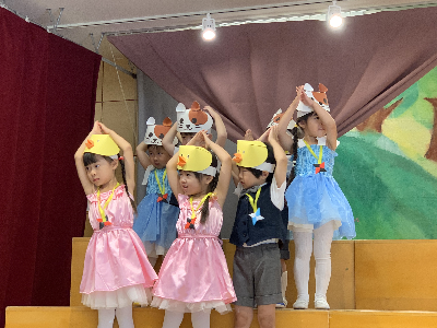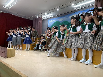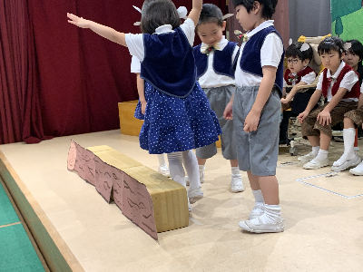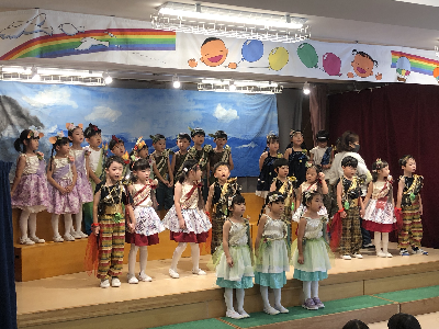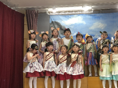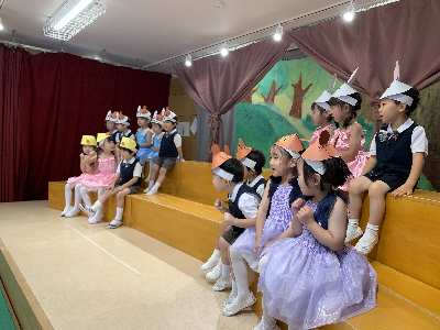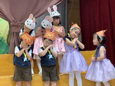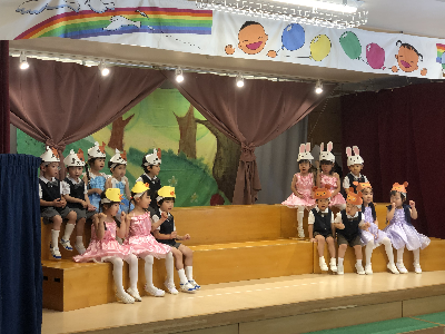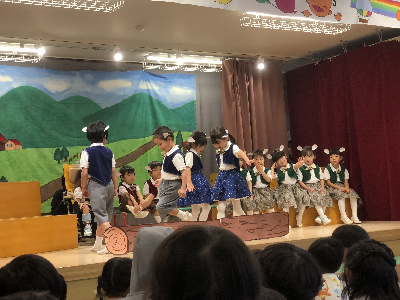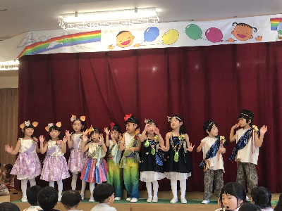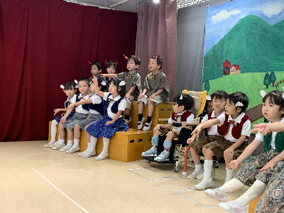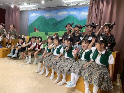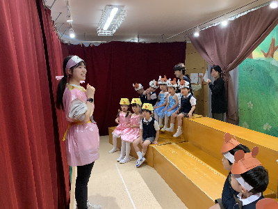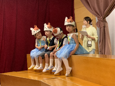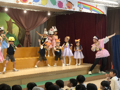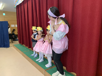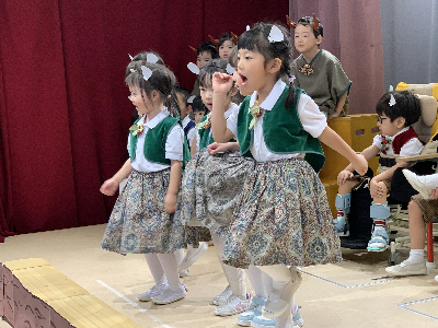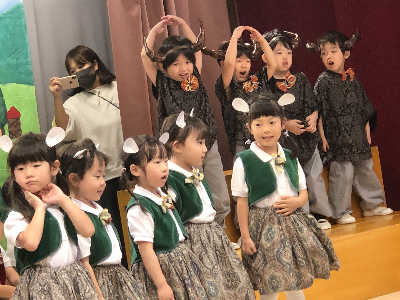 最後はみんなの大好きな「朝ご飯のうた」を歌います♪振り付けがとても可愛らしく、舞台横にいる先生たちも思わず微笑んでいます♡歌の途中には好きなポーズを決めたり、みんなで考えたセリフもあるのでぜひご注目ください!