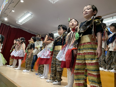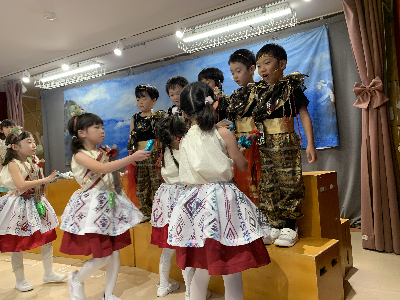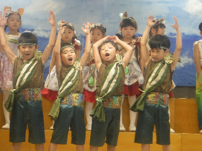 初めての発表会の活動に楽しそうに取り組む子どもたち。