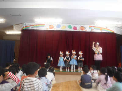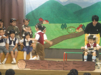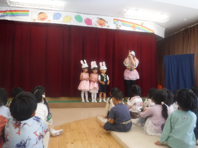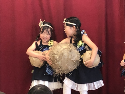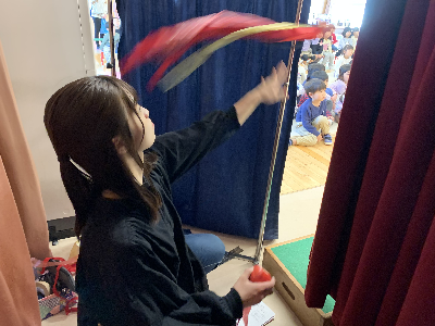 舞台の裏では先生たちが玉を投げる演出をしてくれています!