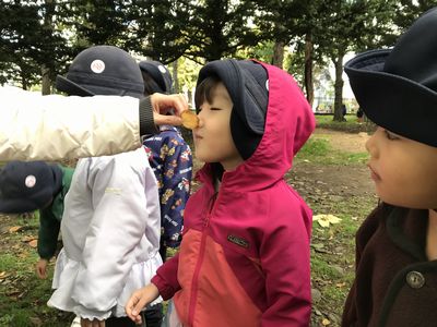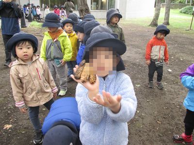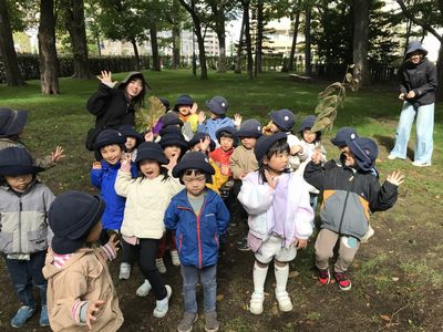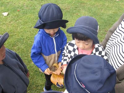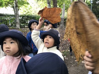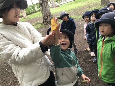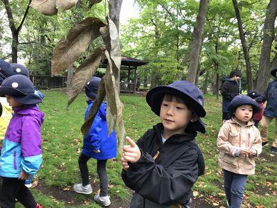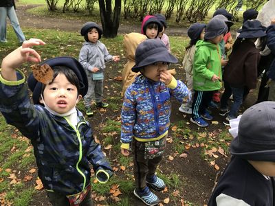 秋の遠足を大満喫したどんぐりさんのみんな。五感を使って、沢山の発見をしてその発見を近くの友達や先生に伝えている姿が見られました。そして、夏と秋の知事公館の変化に気付く姿もありみんなの発見力に嬉しく思う担任達でした♪