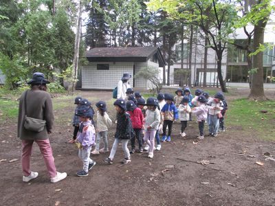朝起きたら雨…。どんぐりグループ最後の遠足に行けるのか朝からソワソワしていた担任達でしたが、雨も上がり太陽が顔を出した状態で無事に『知事公館』へ秋の遠足に出掛けることが出来ました!!