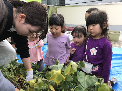 どのグループもサツマイモの姿が見えるとにっこり。嬉しそうな顔がたくさんでした。
