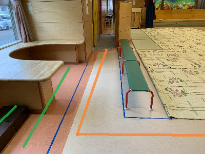 靴置き場がありますので、そちらに靴を置いた後、ホールの入口にまた番号順にお並びいただく予定です。