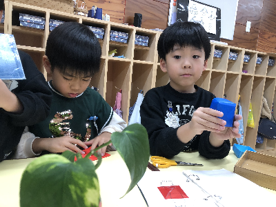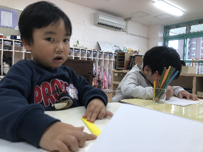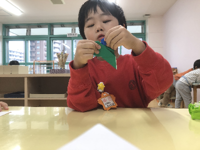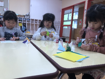 「今日はここの部屋に折り紙をしに来たよ~!」