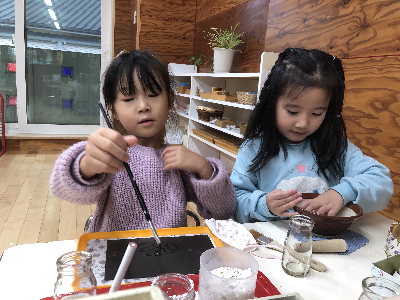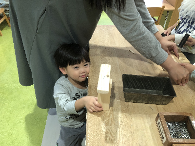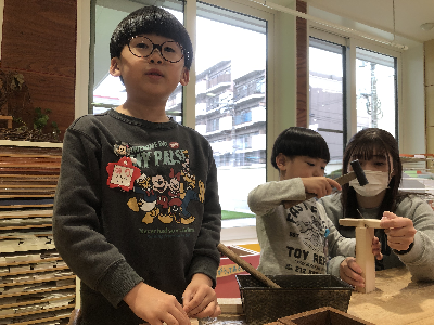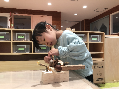 昨日からうさぎさんが木工コーナーでホットボンドができるようになりました♪