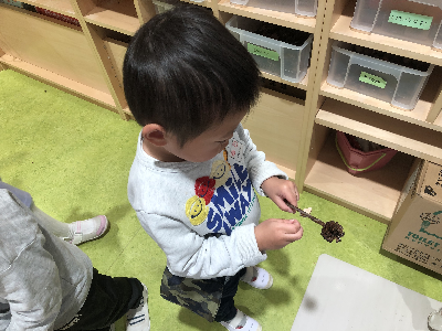 指でしっかり木の実をつまんで「ここにつけてください~!」と教えてくれます。