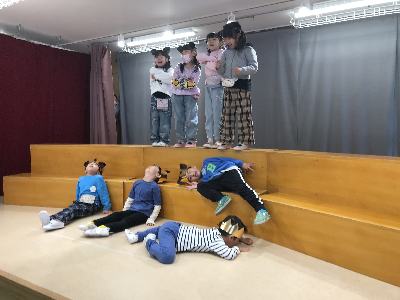劇の初めの方はお休みしていた友達も覚えている子が多く、先生たちがびっくり!